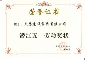 天恩建設(shè)集團(tuán)有限公司榮獲潛江五一勞動(dòng)獎(jiǎng)狀