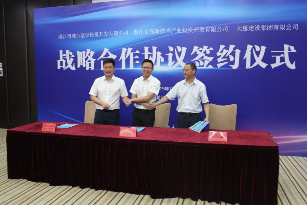 2019年7月3日上午,天恩建設(shè)集團有限公司與潛江市城市建設(shè)投資開發(fā)有限公司、潛江市高新技術(shù)產(chǎn)業(yè)投資開發(fā)有限公司三方共同合作,在七喜國際大酒店舉行裝配式建筑戰(zhàn)略合作框架協(xié)議簽約儀式。